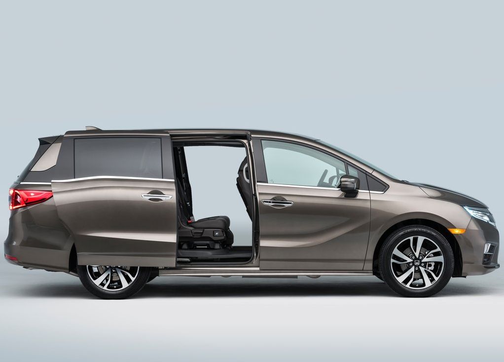 The Honda Odyssey's sophisticated and modern new styling adopts Honda's signature flying wing front grille flanked by available LED front headlights. The bold and sporty front fascia also conceals a new Active Shutter Grille for improved fuel efficiency when cruising. The Odyssey's signature lightning bolt beltline now provides an even more elegant design element with the sliding door tracks hidden in the lower portion of the rear quarter windows. At the rear there are LED taillights and an available new hands-free power tailgate with foot activation.